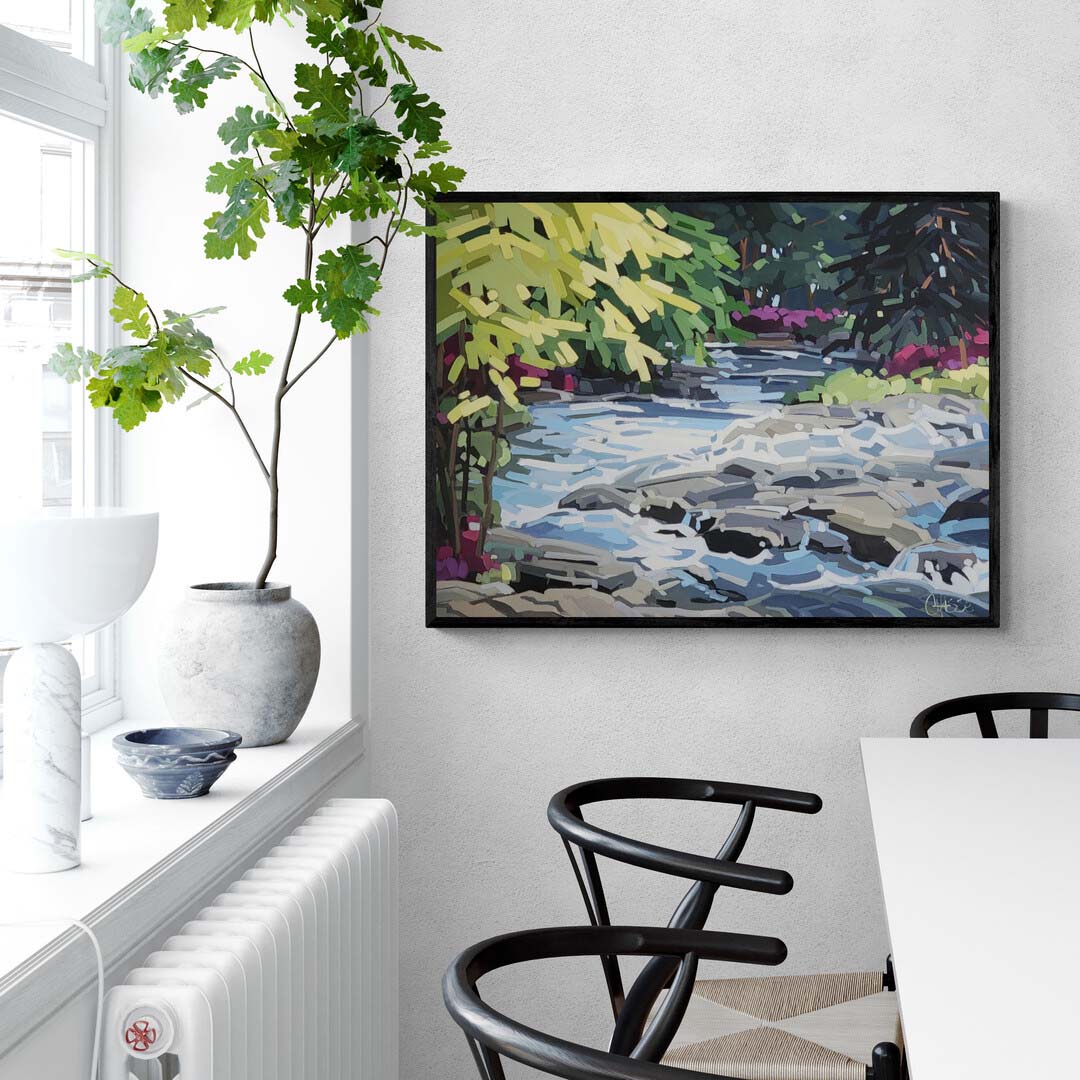 Profitez de la force et du dynamisme qui se dégagent de ce tableau vibrant, mettant en avant une rivière tumultueuse en plein cœur de la forêt après une forte pluie. REFAIRE LE PLEIN D'ÉNERGIE s'inspire de la beauté intemporelle de la nature pour vous offrir des moments de relaxation et de revitalisation.
